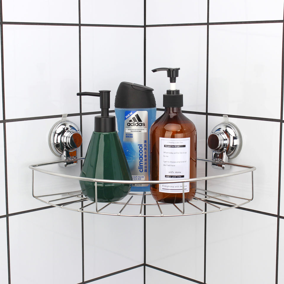 Étagère de rangement pour salle de bain Panier de douche d'angle d'aspiration pour support de shampooing et de gel douche Caddy de douche d'angle en acier inoxydable 304