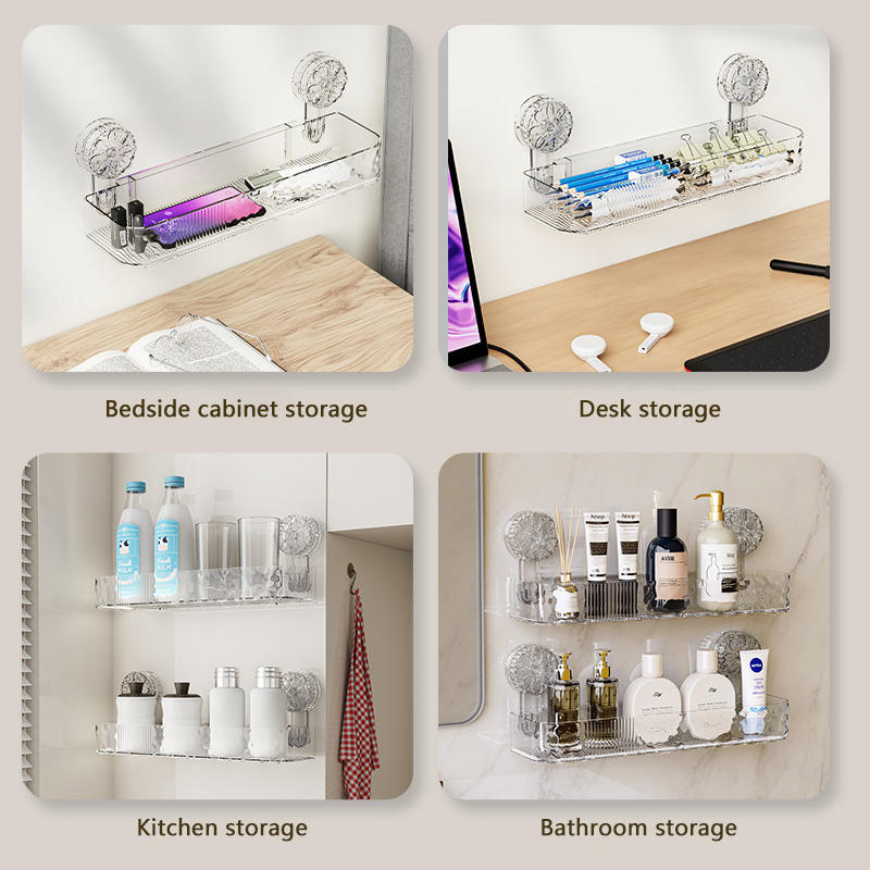 Étagère de rangement en plastique à ventouse pour salle de bain murale sans trous de perçage Support de rangement
