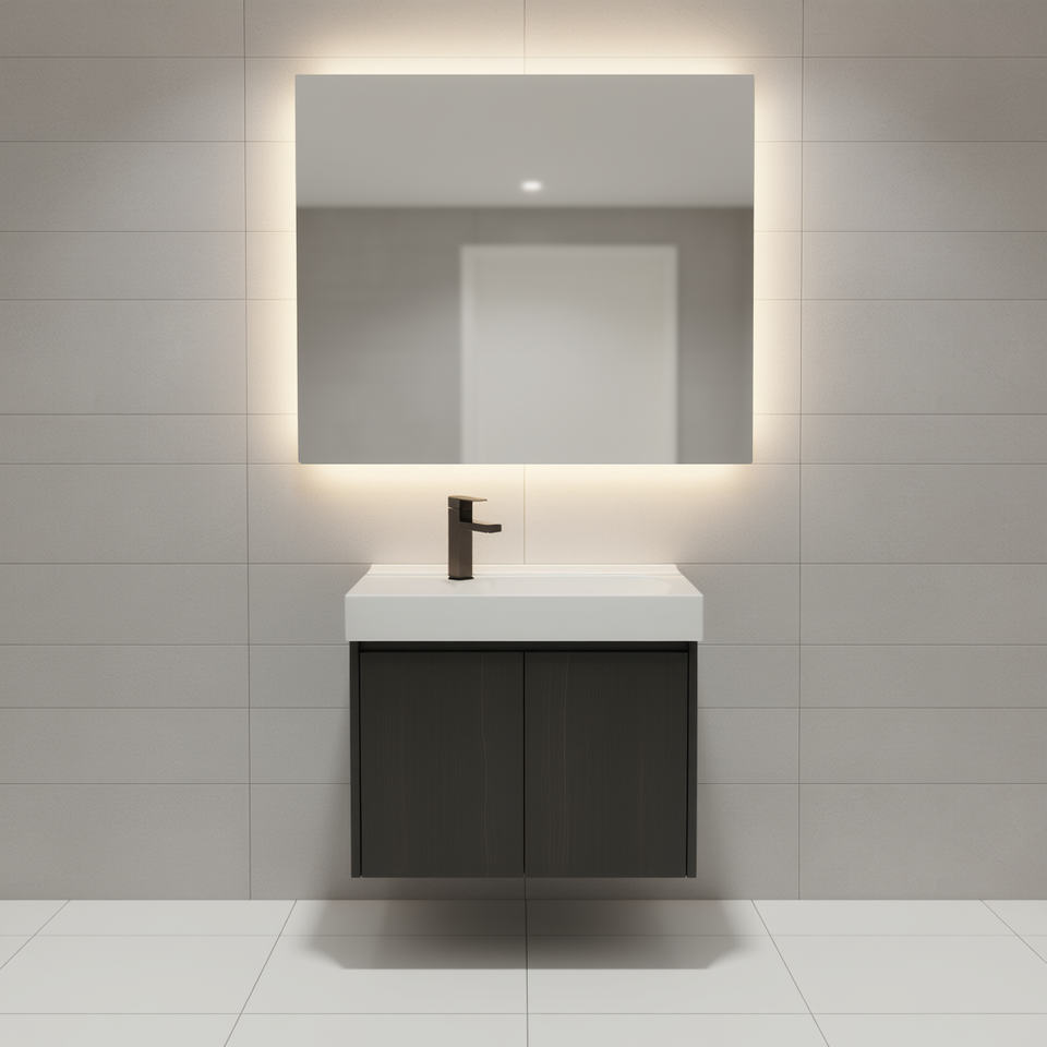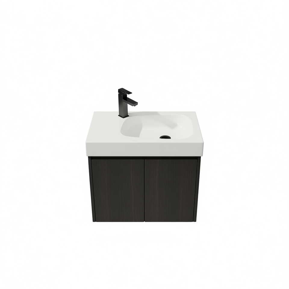 Meubles-lavabos de salle de bain 24 pouces, suspendus au mur, avec vasque en céramique, double porte, armoire de rangement en bois, design moderne