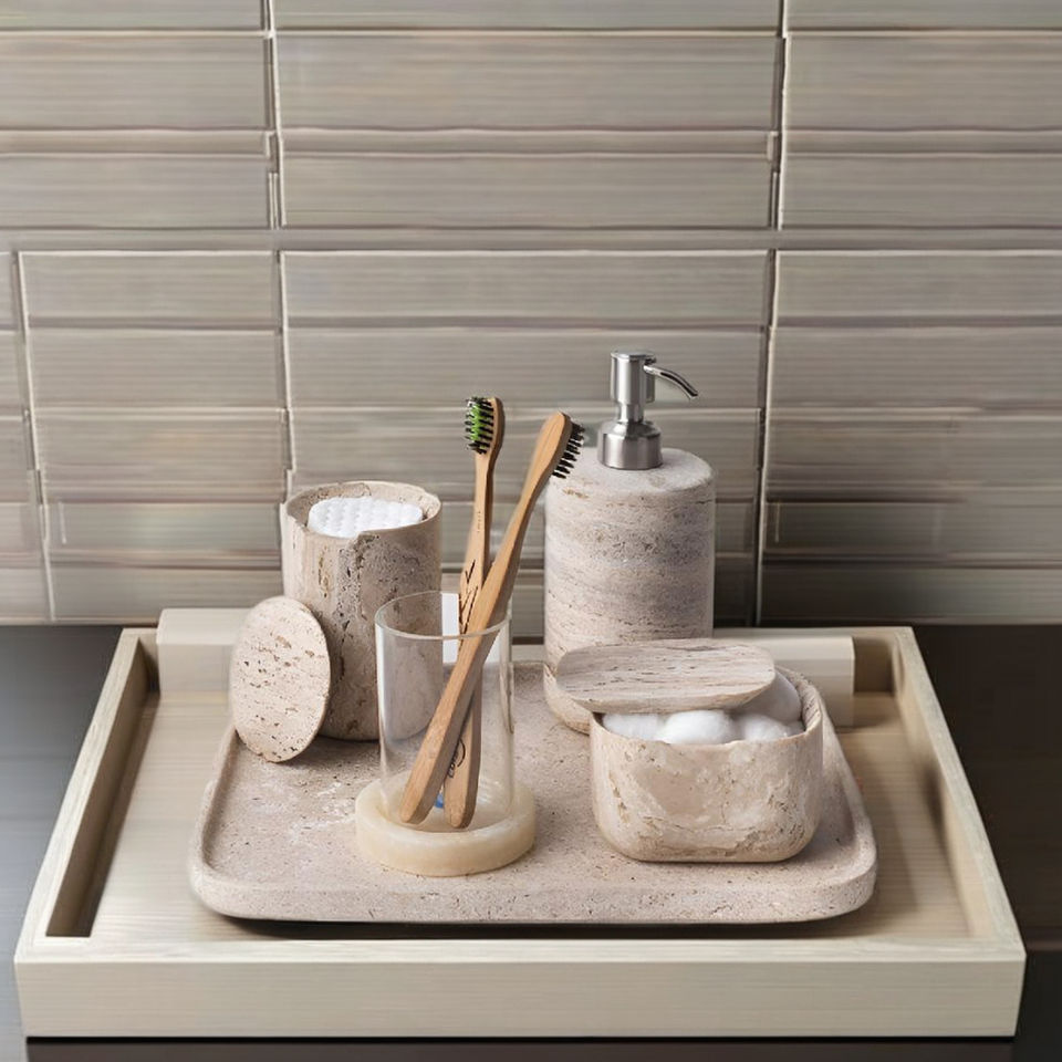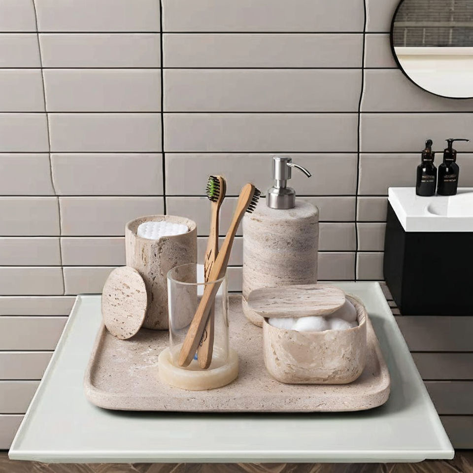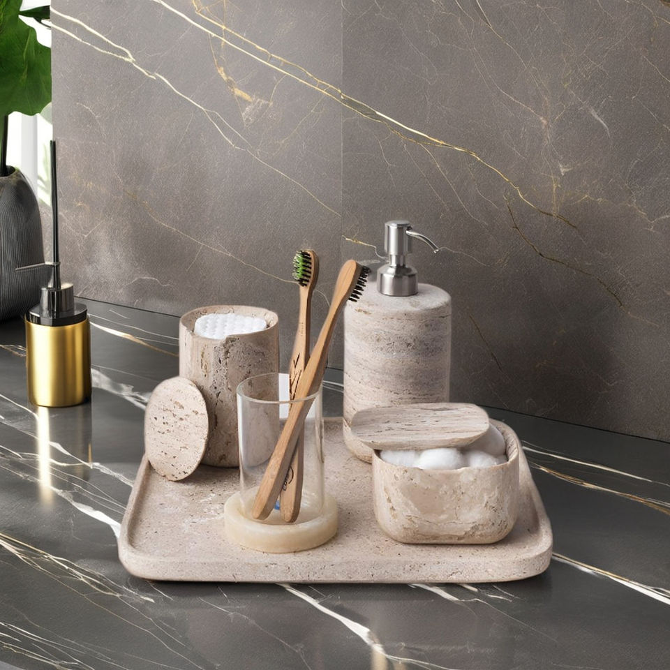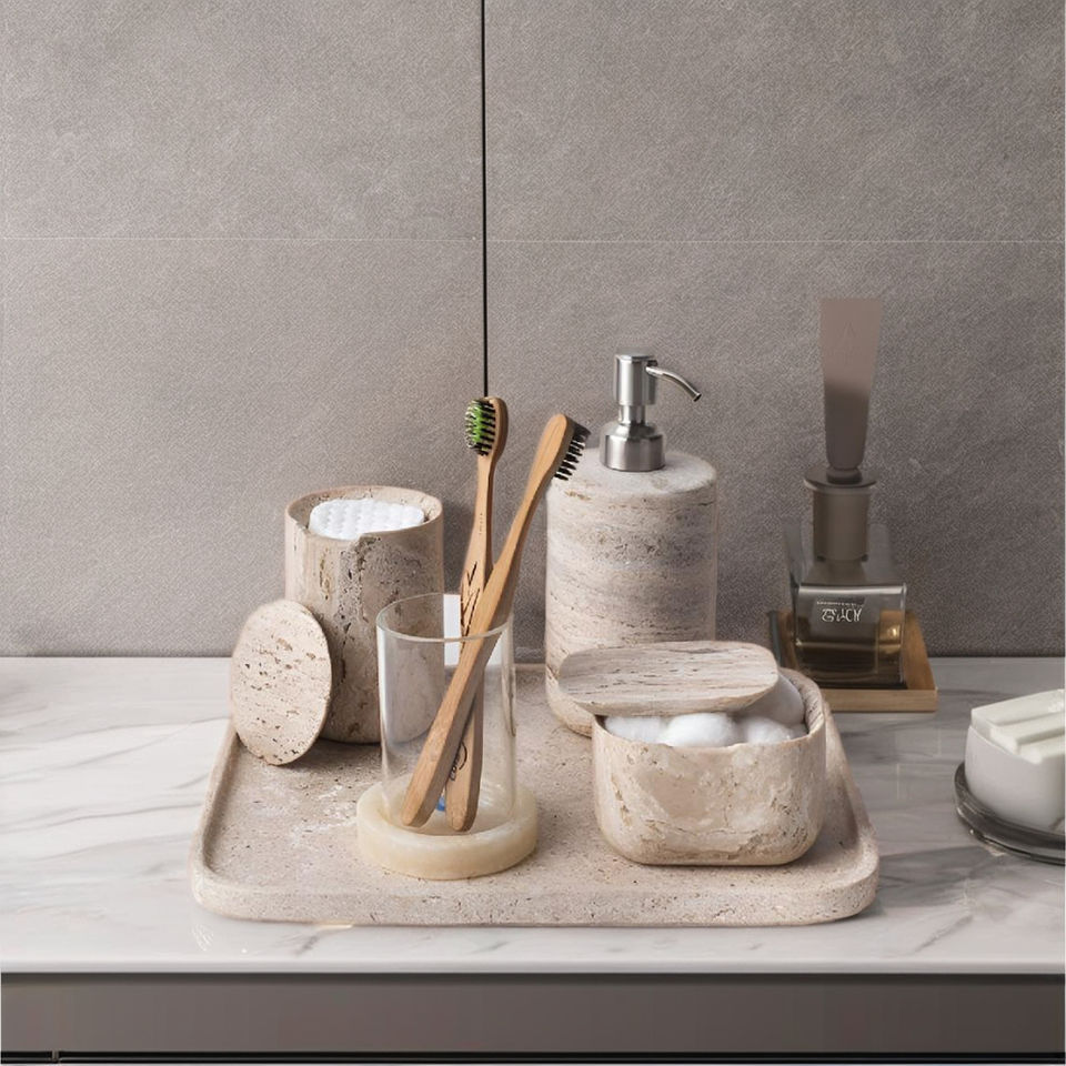 Bathroom Vanities Sets Elegant Luxury Marble & Travertine Bathroom Set Soap Dispenser Stone Accessories for Upscale Decor