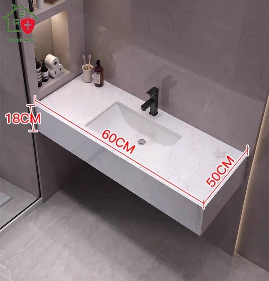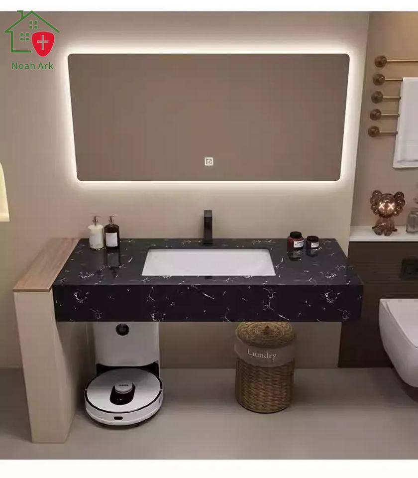 Ensemble de vanité de salle de bains: grand miroir éclairé par LED, évier intégré en céramique, design élégant, peu encombrant et polyvalent pour les salles de bains