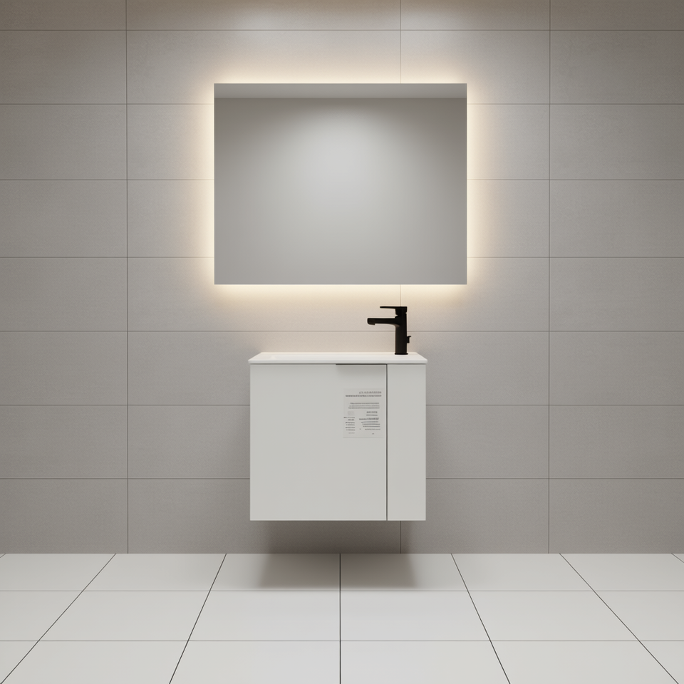 Meuble-lavabo de salle de bain 22 pouces, design flottant, porte à fermeture douce, style minimaliste, armoire murale en MDF, vasque en céramique