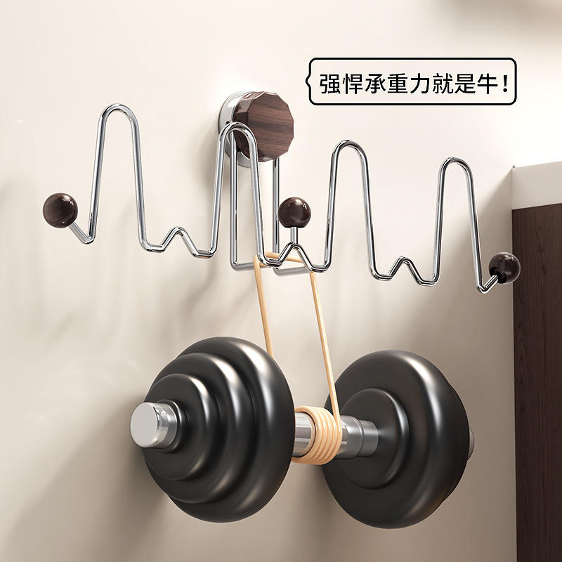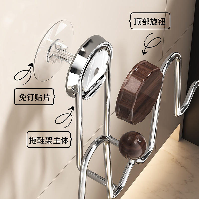 Étagère à chaussures murale pour salle de bain avec cadre en bois et crochets, organisateur de rangement sans perçage, finition polie couleur noyer