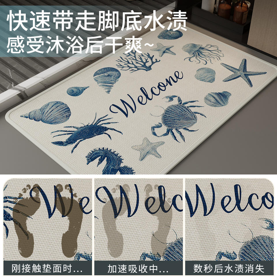 Tapis de salle de bain tissé rectangulaire antidérapant à motif coquillage pour entrée de toilettes, lavable en machine, nettoyable à la main