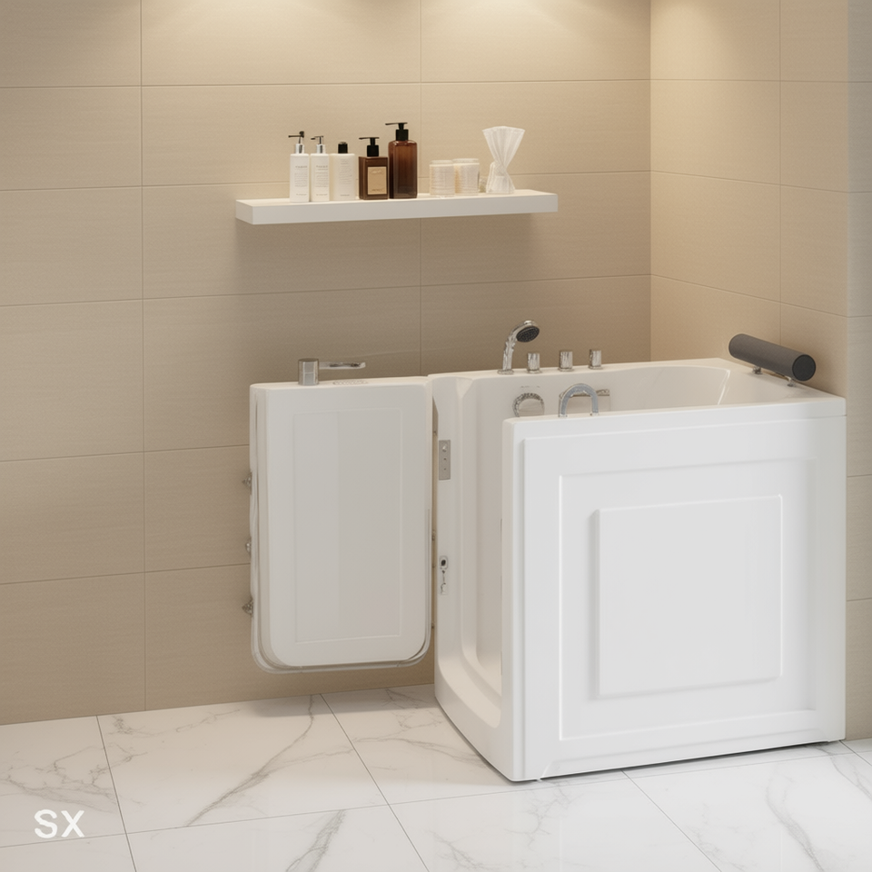 Baignoire pour personnes âgées, version droite, 72 cm de largeur, 101,5 cm de longueur, 100 cm de hauteur, design accessible