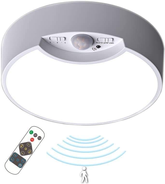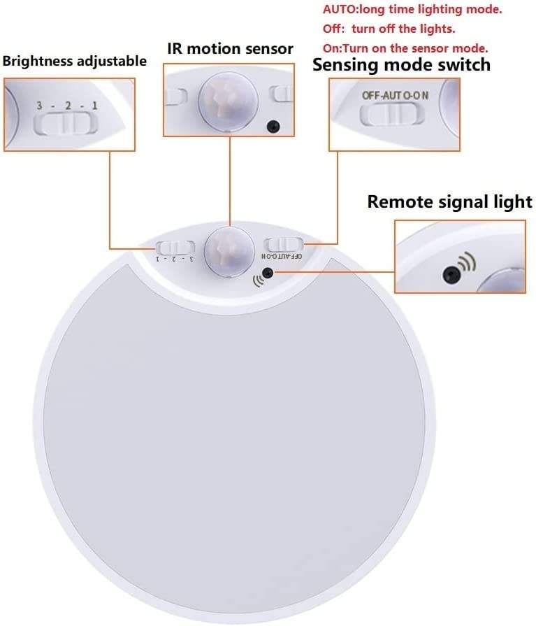 Plafonnier LED à capteur de mouvement avec télécommande, alimenté par batterie, minuterie à intensité variable, éclairage d'intérieur, d'armoire, d'escalier, de sous-sol