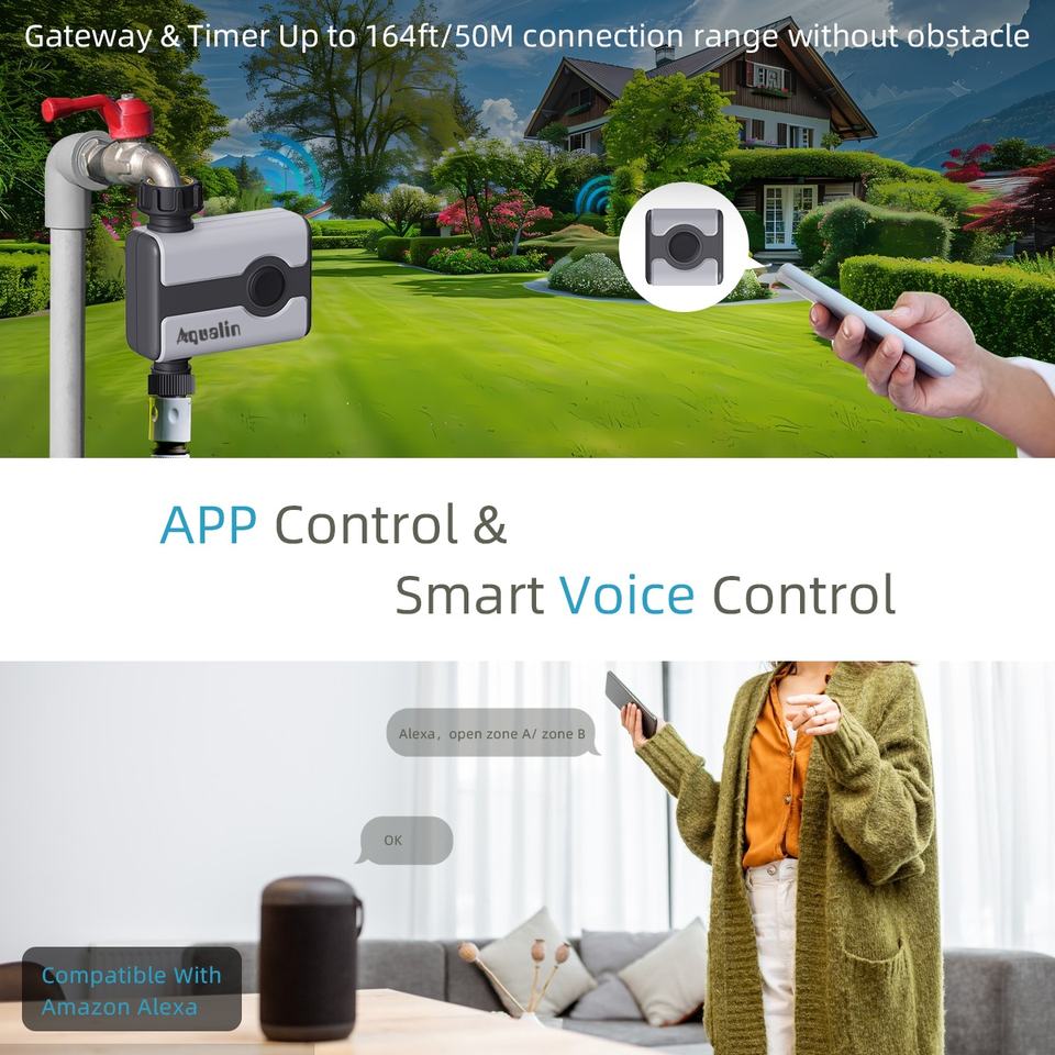 Kit de programmateur d'arrosage WiFi à piles avec passerelle et application intelligente pour la planification à distance de la vanne d'arrosage extérieure