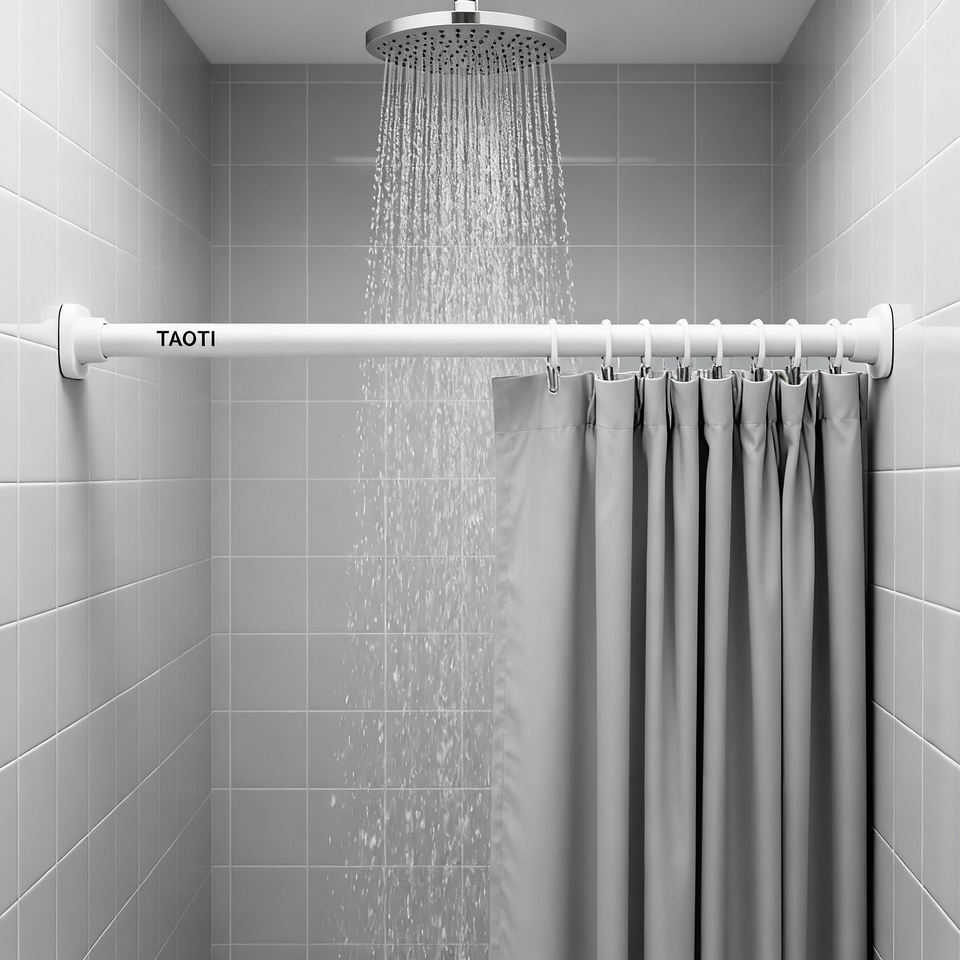 Poteau de rideau de douche télescopique en baie vitrée sans perceuse tige réglable matériau Durable et facile à utiliser prix bas pour rideaux de salle de bain