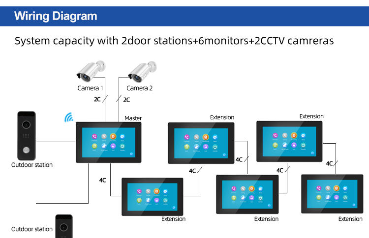 Système:Support 6 unité intérieure + 2 station extérieure + 2 caméras de vidéosurveillance
