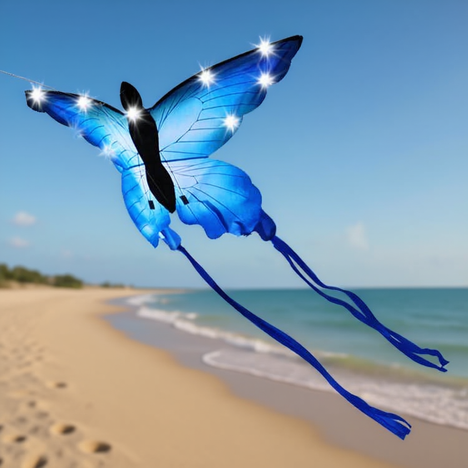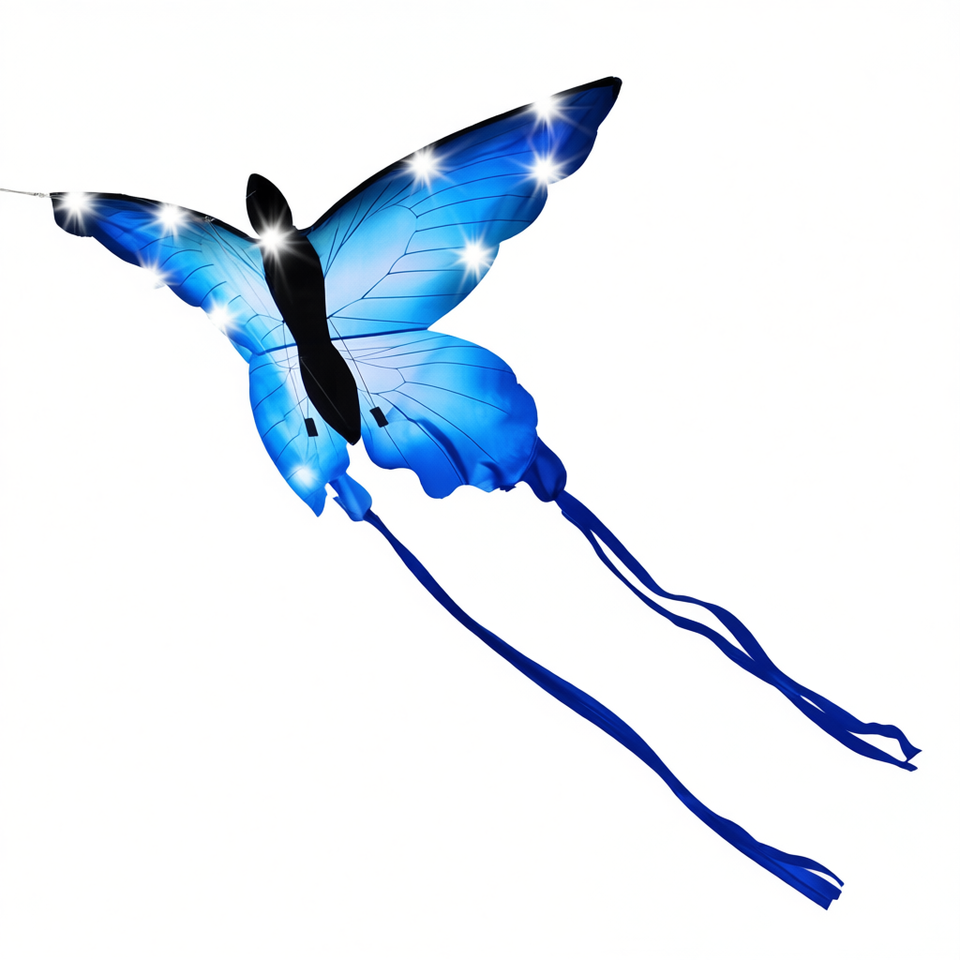 Cerf-volant LED BDT à ligne simple, jouet de plage papillon avec ligne de 30m et rubans de 75x140cm + 1,5m