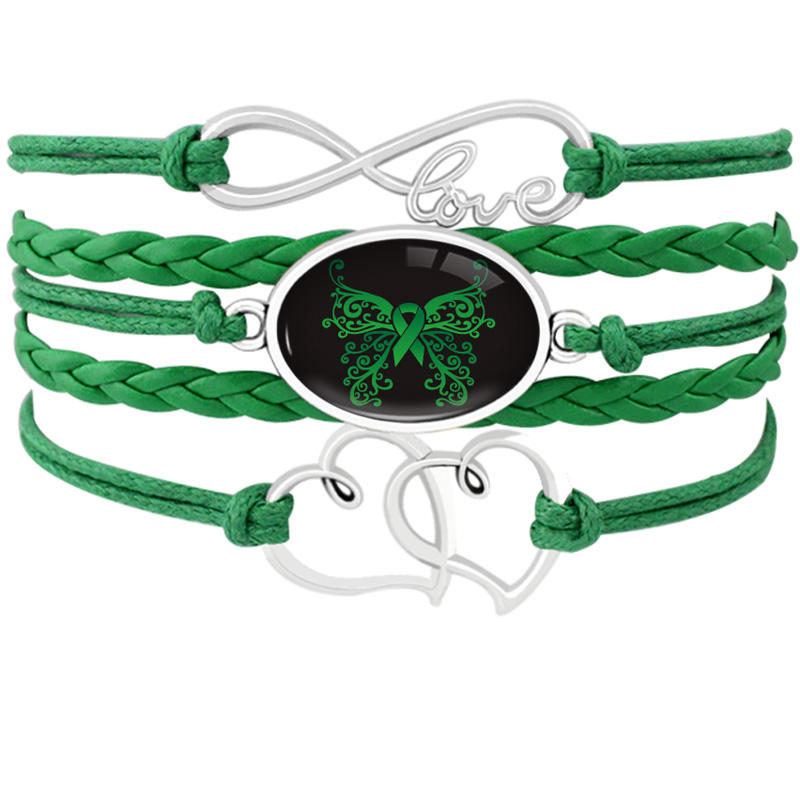 Bracelet en cuir avec ruban, pour femme et homme, ruban vert, dure longtemps, combat éveil, survie, amour, croyance, Hope, maman