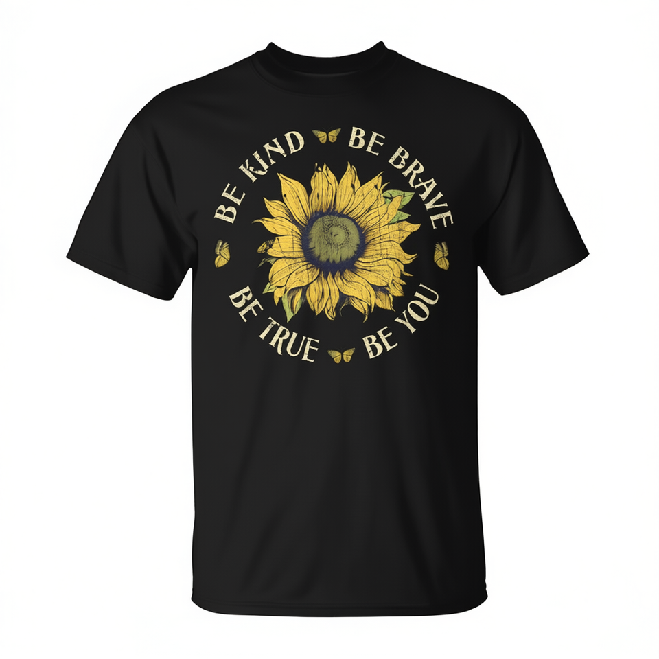 Soyez gentil, soyez courageux, soyez sincère, soyez vous-même, t-shirt de motivation avec motif tournesol
