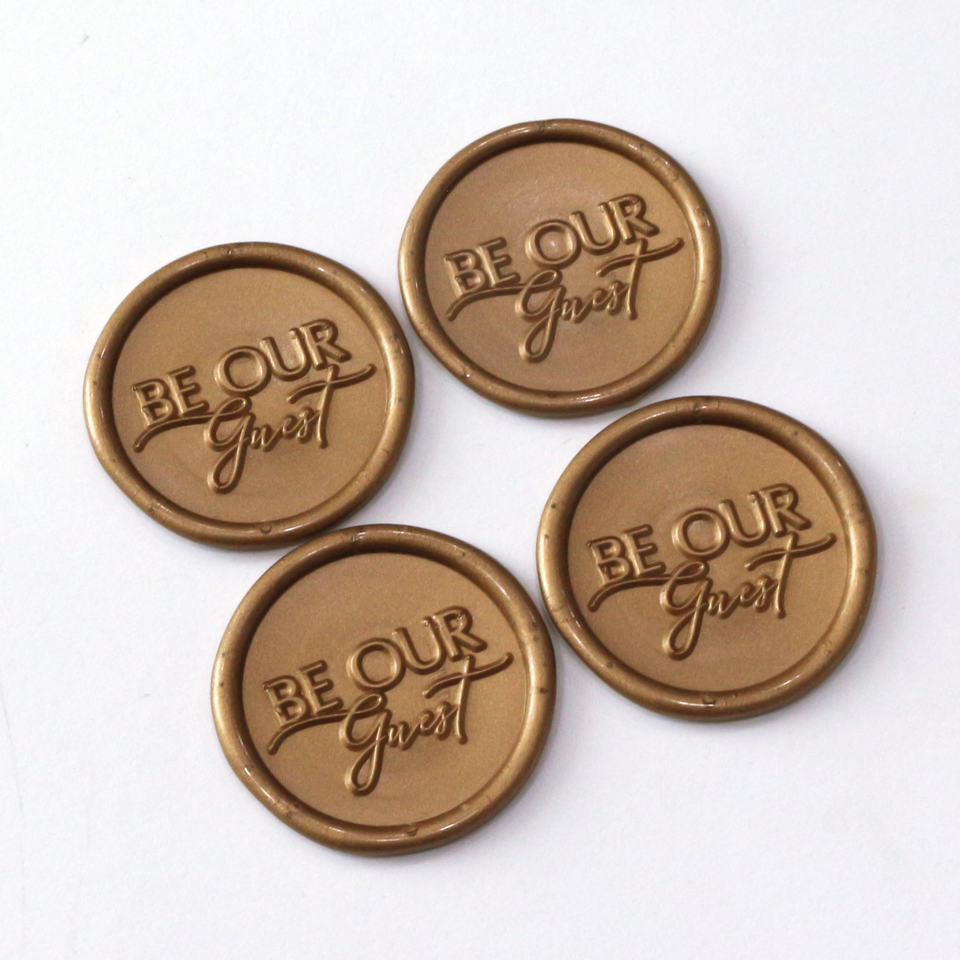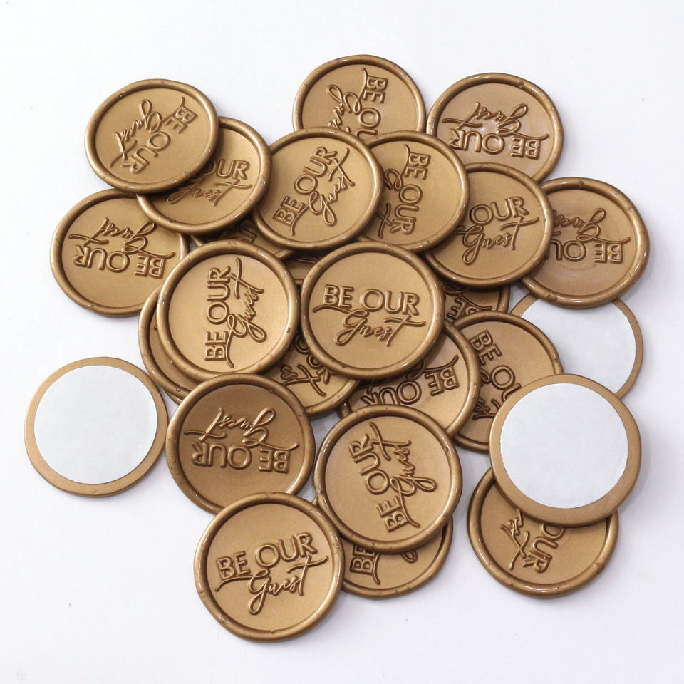 Sceaux autocollants « Be Our Guest » avec logo, 40 couleurs au choix, pour sceau de cire, fabriqués en pigment de paraffine à base de terpentine