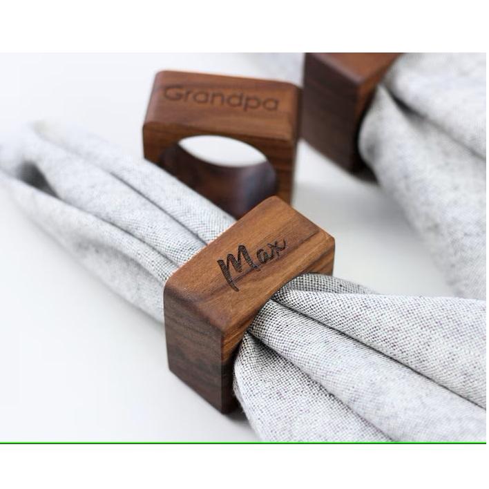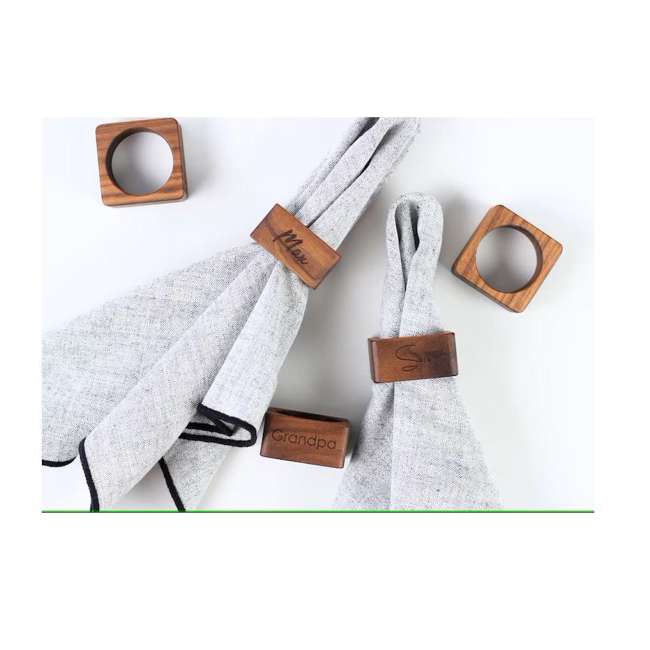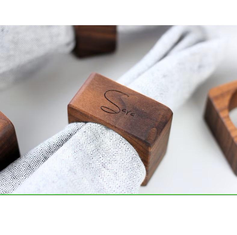 Anneaux de serviette carrés en bois Be-kind pour anneau de serviette en bois de fête Idéal pour la vaisselle et la décoration du dîner Anneau de porte-serviettes