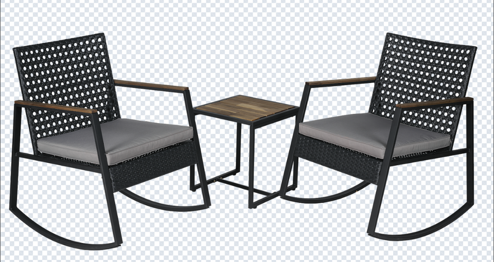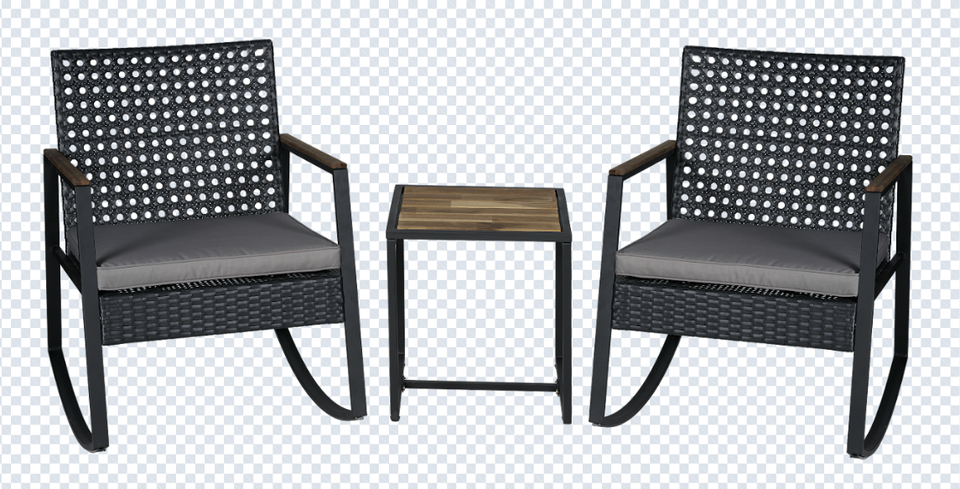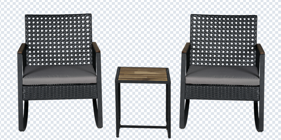 BeNK Bistro Ensemble de meubles d'extérieur modernes en rotin PE, dessus de table en acacia à bascule, 3 pièces, hôtels de cour à cadre en acier enduit de poudre
