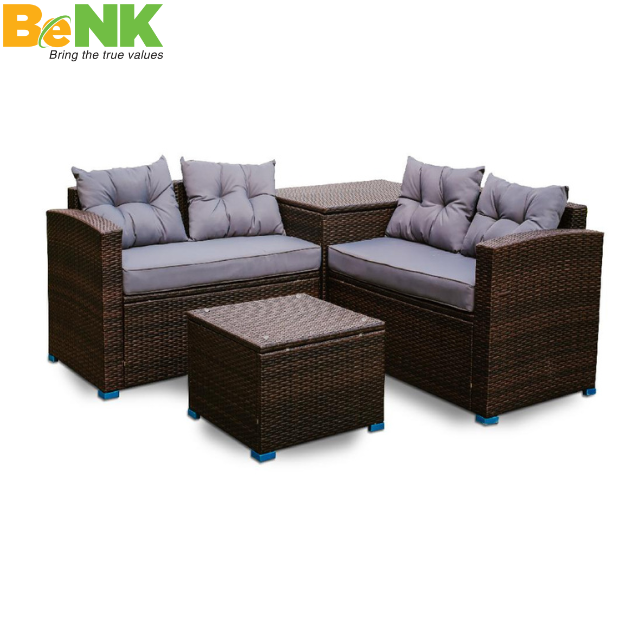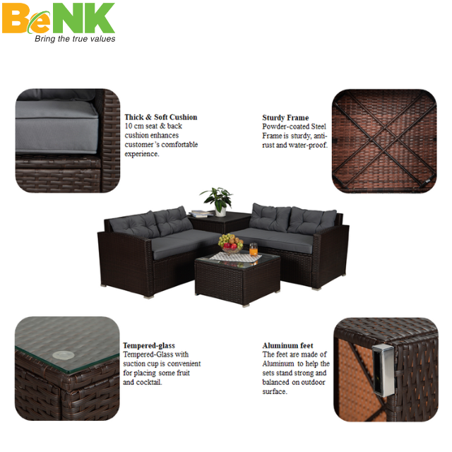 Matériel principal:Rotin de PE, cadre en acier, verre, coussin