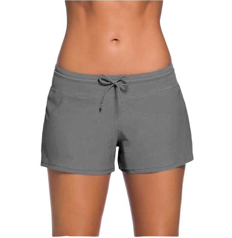 Short de bain unisexe à motif uni, avec perles, logo frontal, design simple, 1 pièce, polyester/coton