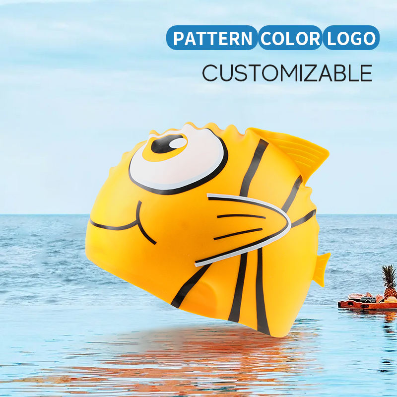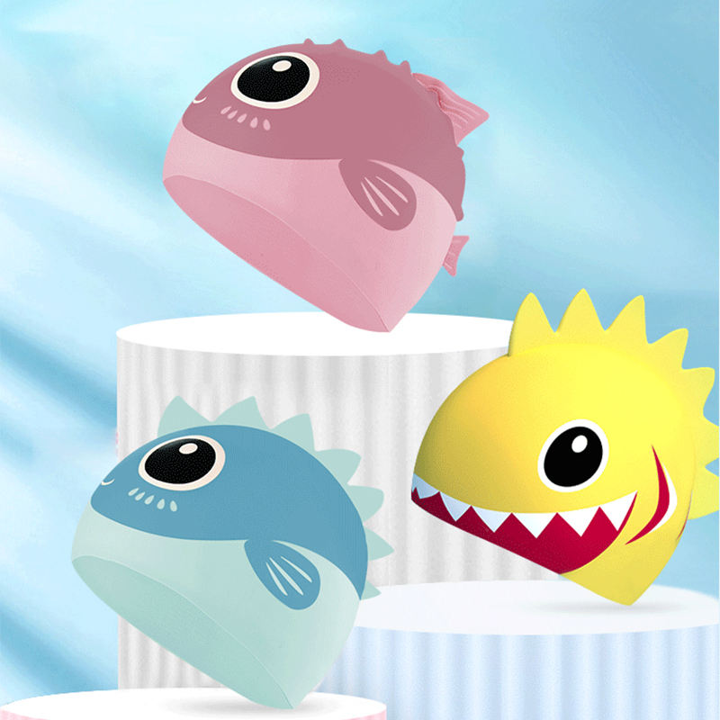 Bonnet de bain imprimé en silicone pour la plage pour filles et garçons Chapeaux de natation pour enfants avec logo personnalisé avec requins de dessin animé