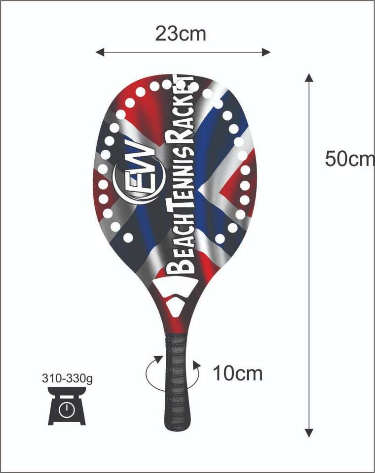 Raquettes de beach tennis avec face de 20 mm, poids de 310-330 g, longueur de 50 cm, poignée en fibre de carbone et filet en fibre de verre carbone