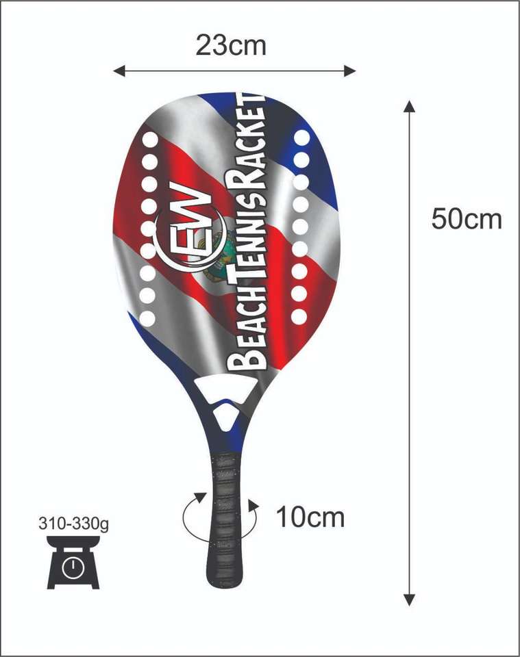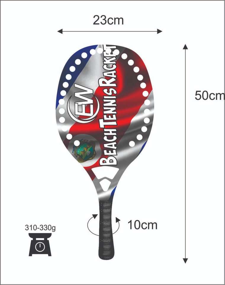 Raquettes de beach tennis avec face en fibre de carbone de 20 mm, poignée en fibre de carbone, filet en fibre de verre, poids 320-340 g, longueur 50 cm