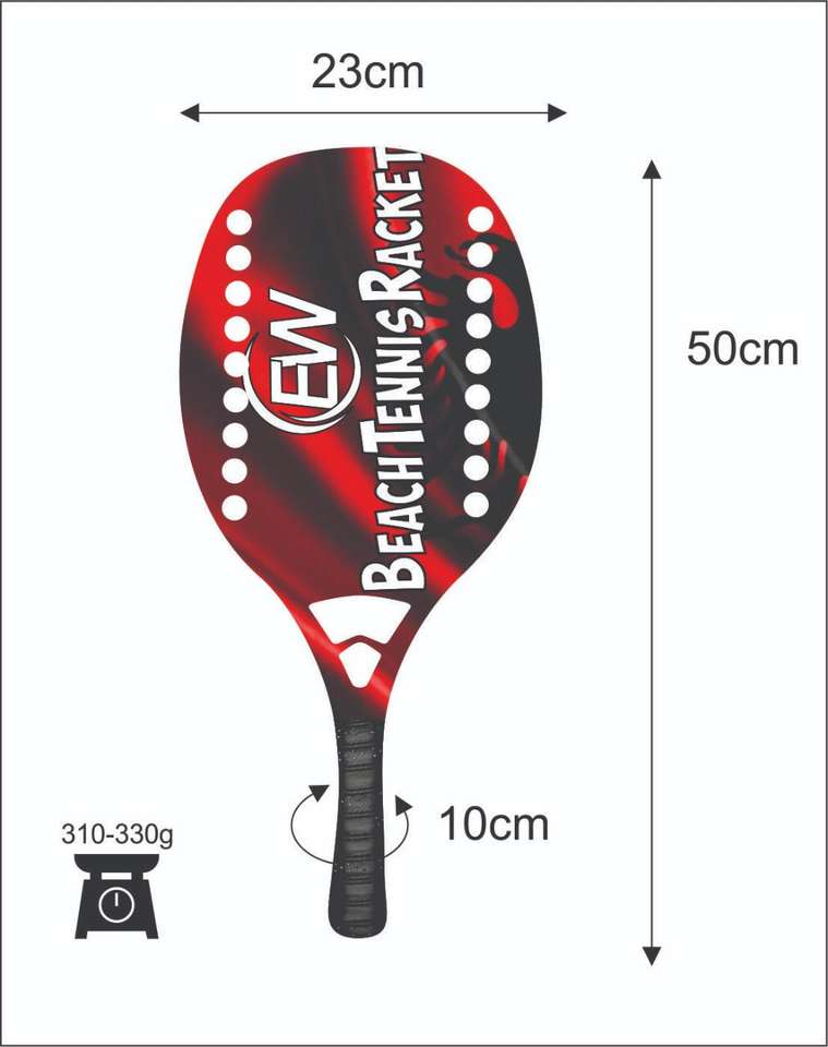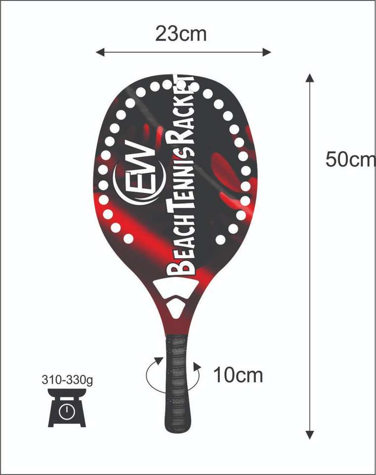 Raquettes de beach tennis avec face en fibre de carbone de 20 mm, poignée en fibre de carbone, filet en fibre de verre, poids 310-330 g, longueur 50 cm