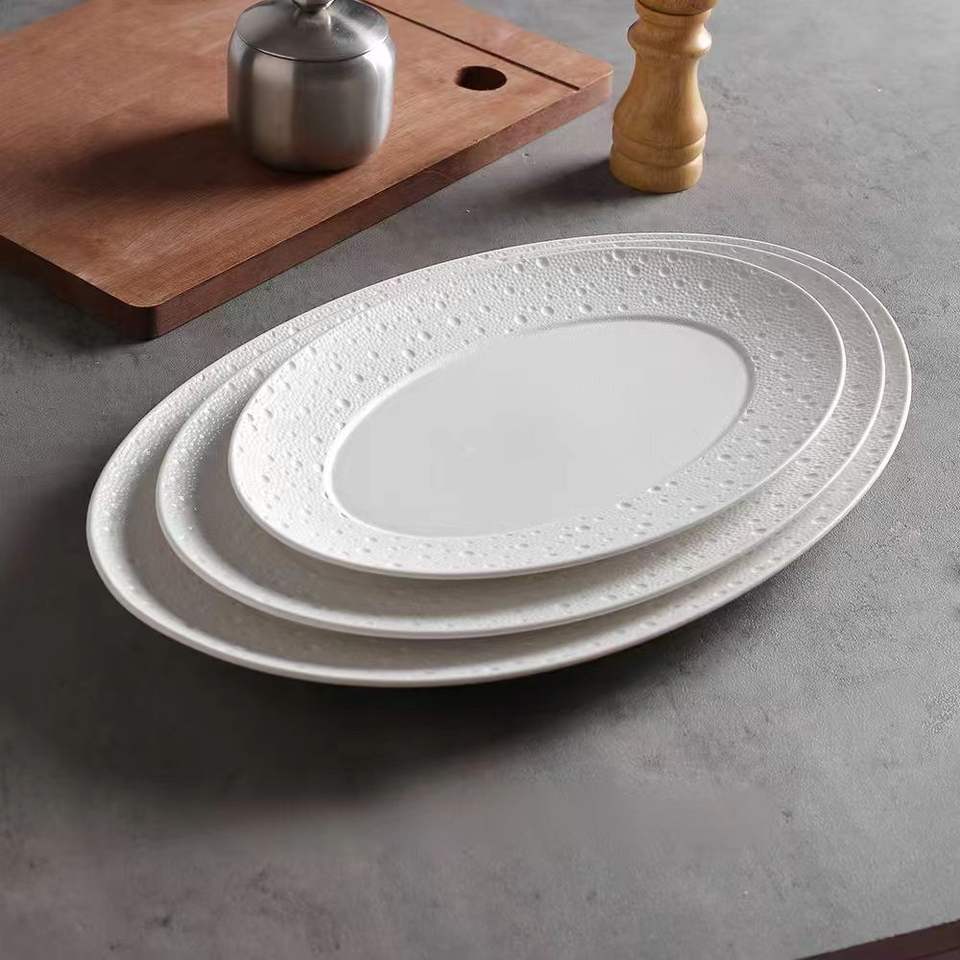 Perle Point Poisson Assiette Ménage Exquis Haut de Gamme Assiette De Poisson À La Vapeur Assiette En Céramique Sens Du Luxe