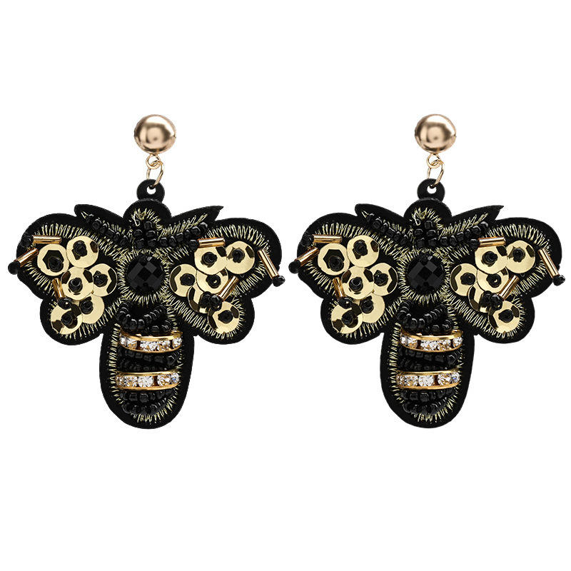 Boucles d'oreilles pendantes abeille perlées, motif animal, appliqué brodé, strass, par MD HANDICRAFTS