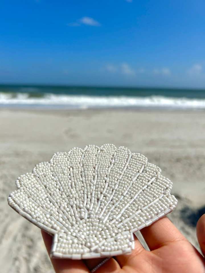 Sous-verre perlé-ensemble de coquille blanche de cadeau d'anniversaire accessoire de dortoir d'été de table côtière