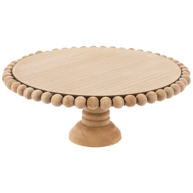 Support à gâteau en bois à bord perlé Support à gâteau rond en bois naturel Décoration de mariages et de fêtes Support à gâteau rond élégant et élégant