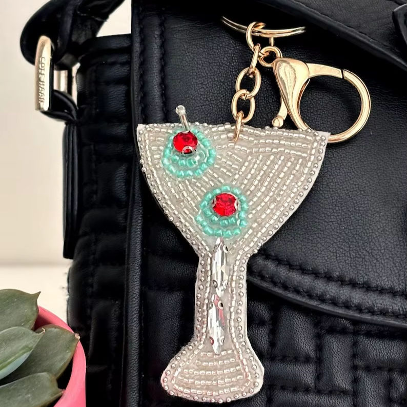 Porte-clés brodés de perles et accessoires de sac en perles de rocaille, breloques de sac brodées de perles de rocaille faites à la main avec motifs festifs