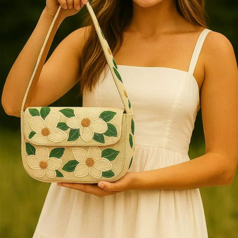 Sac à bandoulière flamant rose perlé, sac à perles d'agrumes, sac à main d'été tropical, sac citron fait main, pochette perlée artisanale,