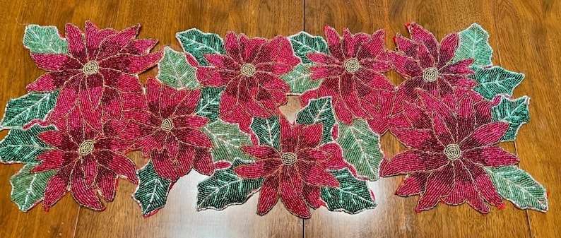 Chemin de table en verre perlé de Noël, vaisselle, assiette de présentation, table à manger, perles de verre, chemin de table perlé pour fête de mariage, décoration de la maison