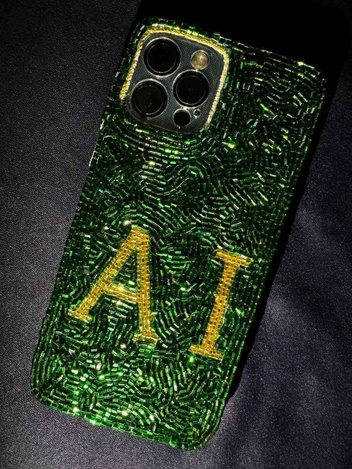 Étui/Pochette multifonction pour téléphone portable avec fermeture éclair, motif tuiles de Mahjong perlées, sac à main perlé fait main avec chaîne bandoulière