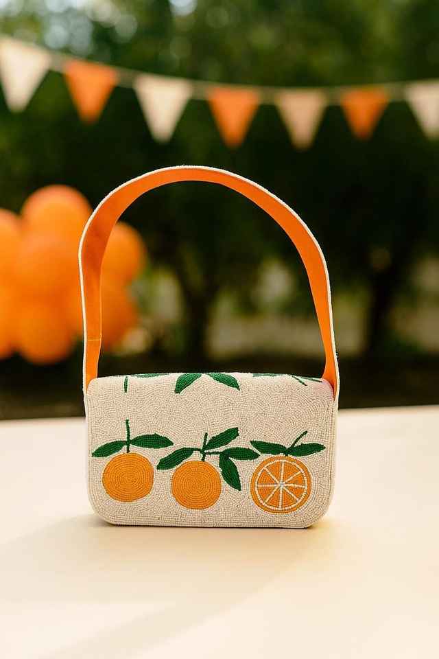 Sac à bandoulière orange perlé, sac à main orange design, sac à main perlé aux couleurs des agrumes, sac orange fait main