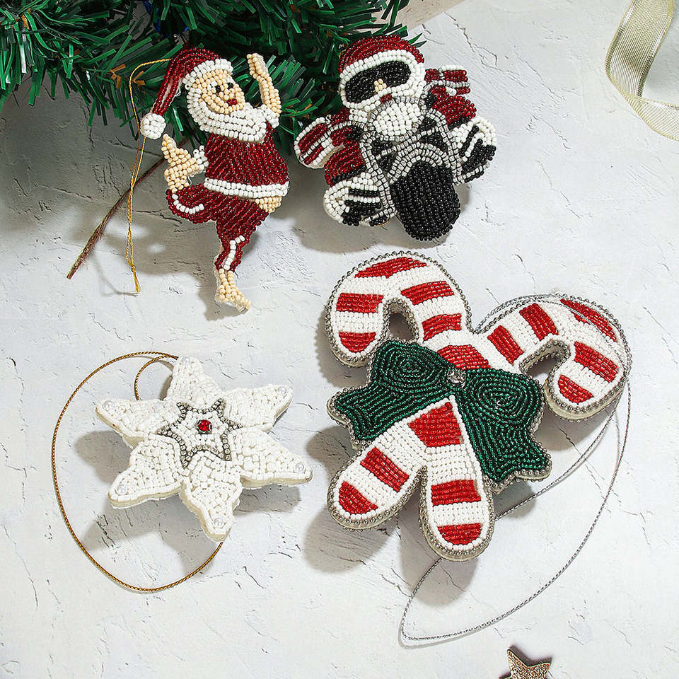 Beaded Pear Christmas Ornaments Unique Handmade Fruit-Themed Tree Hangers Rustic Farmhouse Holiday Decor or Year-Round Kitchen