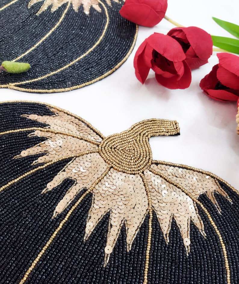 Napperon perlé Chargeur rond fait à la main pour salle à manger de luxe et décor de vacances Pièce unique perlé à la main, napperon, pendaison de crémaillère