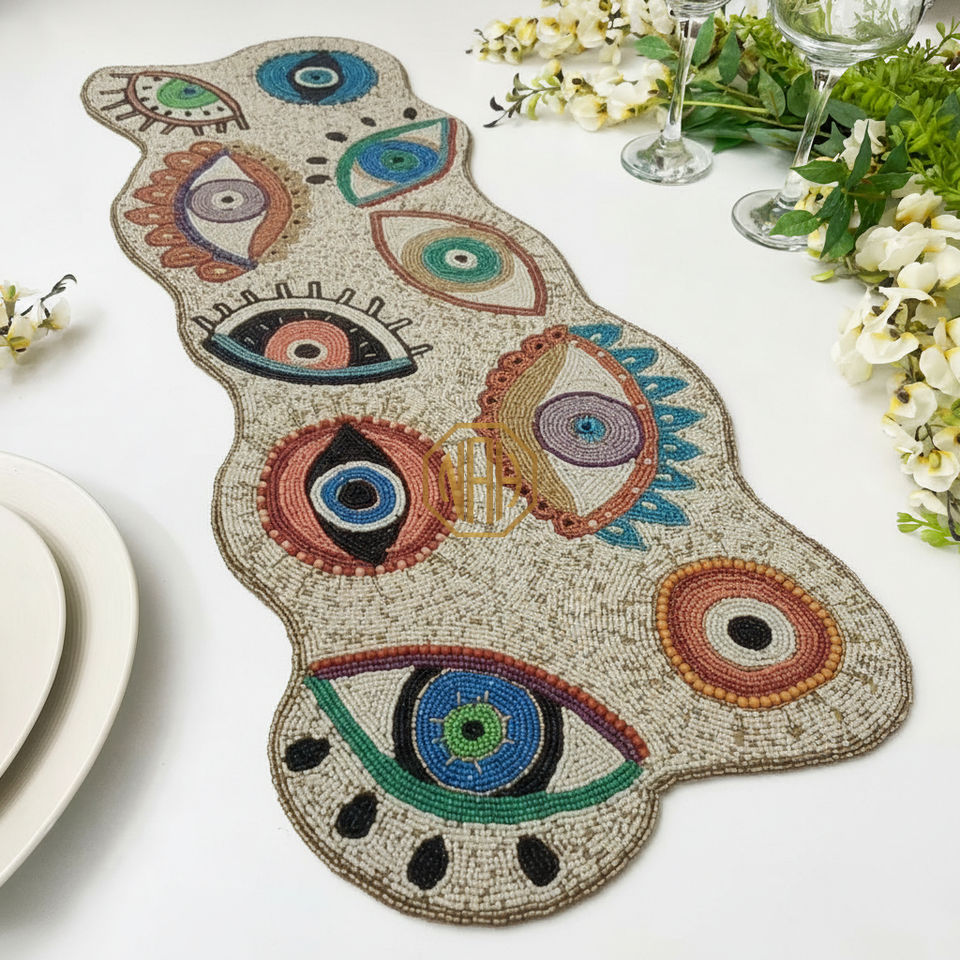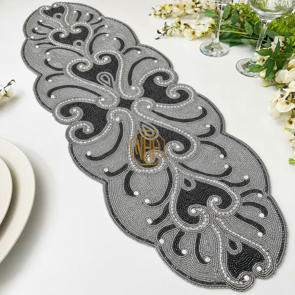 Chemin de table en perles, sous-plat, fait à la main, brodé, motif personnalisé, vente en gros