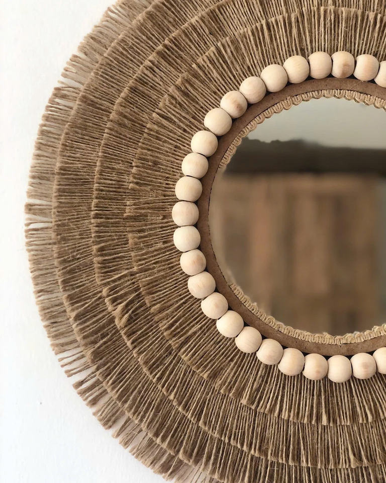 Product name:Beads with jute Mirror, Jute Wall Hanging Mirror,