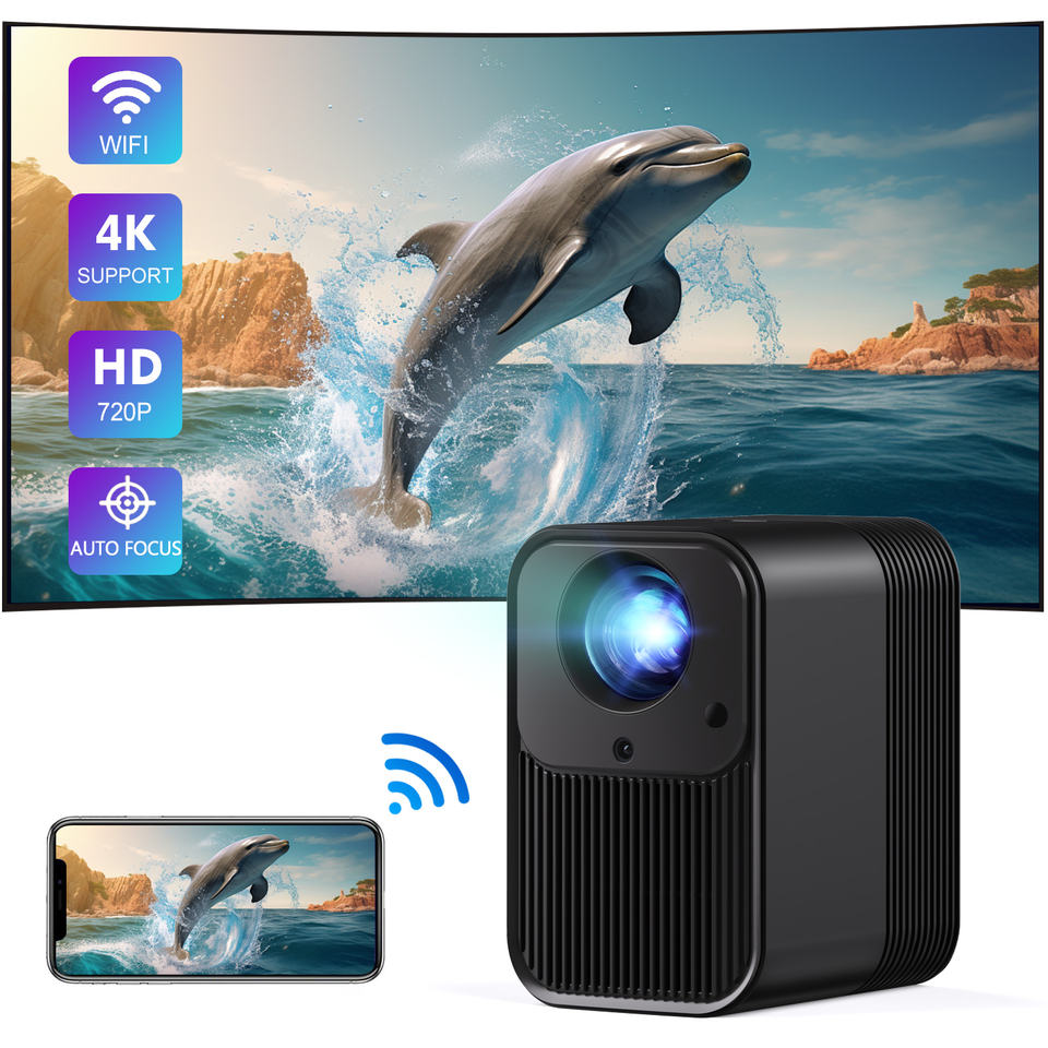 Projecteur domestique Beamer 720P Mini Pico avec mise au point automatique, 300 ANSI, WiFi intégré, Android 4K, LED, stéréo HIFI, portable, extérieur