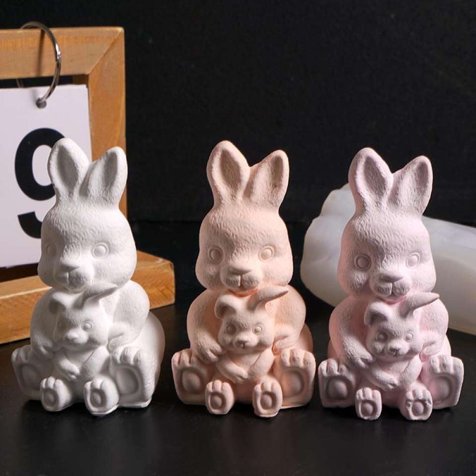Bear Vase Sitting Love Puppy Bear Mother And Child Rabbit Candle Gypsum Candle Silicone Mold