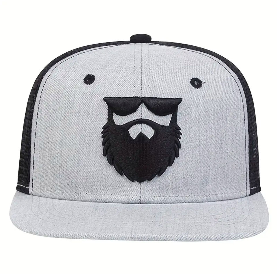 Casquette de baseball snapback en sergé brodée Beard Man, tendance hip-hop, réglable, respirante, en maille, unisexe, modèle bas commun