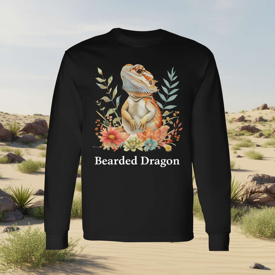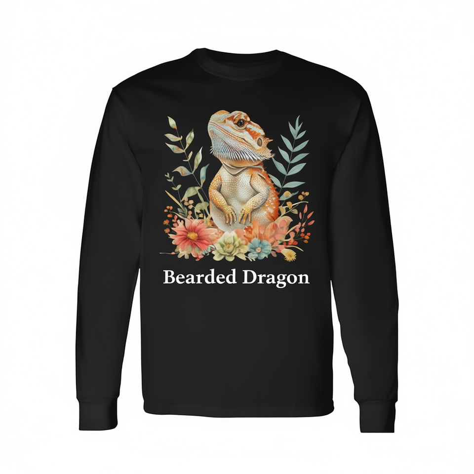 T-shirt à manches longues pour amoureux des reptiles, dragon barbu, motif floral, nature, lézard