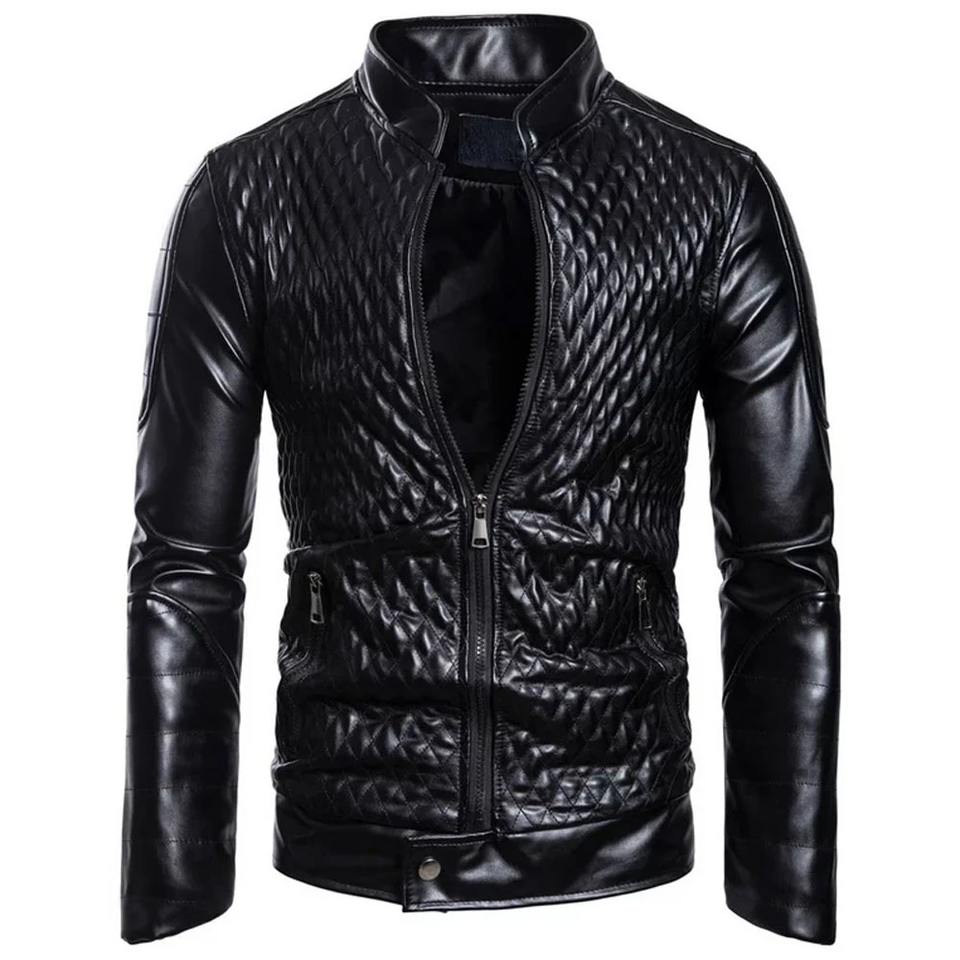 Veste en peau de mouton véritable Beast Premium, motif matelassé, noire, poches zippées, boutons pression, design polyvalent pour l'hiver, imperméable