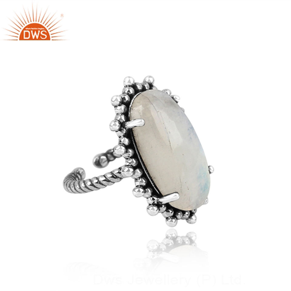 Beat Design 925 argent Sterling naturel arc-en-ciel pierre de lune pierre précieuse bague bijoux personnalisés pour les femmes cadeau pour elle
