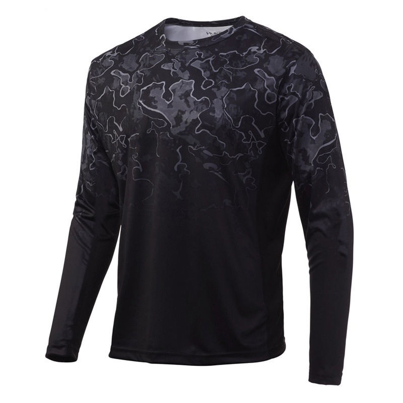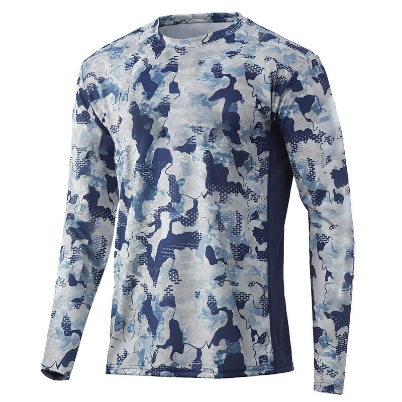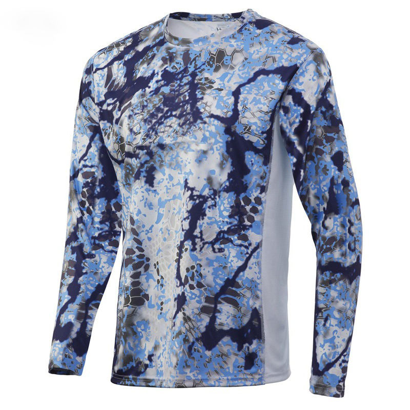 Chemise de pêche à manches longues à col rond en polyester pour hommes, style personnalisé, respirante et à séchage rapide