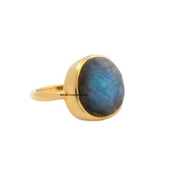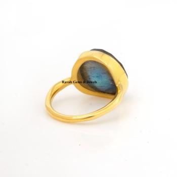 Product Name:Blue Labradorite Organic Shape Sterling Silver Gold Plated Ring