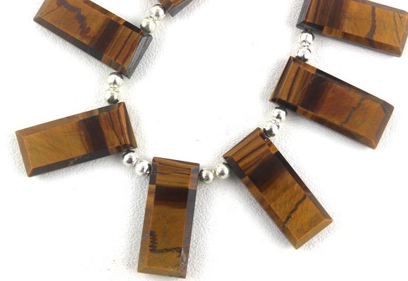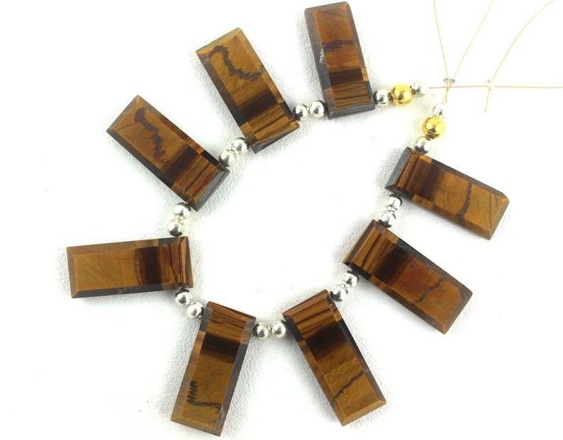 Magnifique 1 brin de perles de Briolette en forme d'oeil de tigre naturel Rectangle à facettes fabrication de bijoux DIY