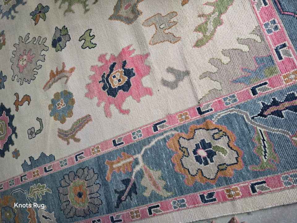 Blue Beige Wool 9x12 Beautiful Rug:Blue Beige 9x12 Beautiful Rug , High Quality Oushak Modern
