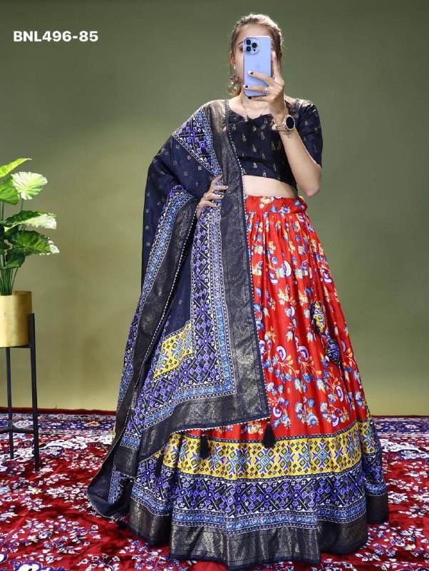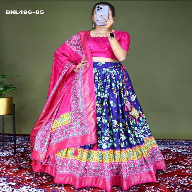 Nom du produit:Magnifique chemisier Lehenga imprimé en soie Dola aux couleurs éclatantes avec Dupatta