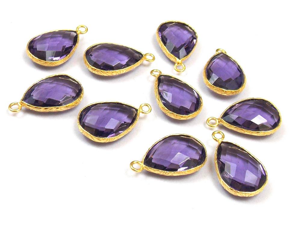 Connecteur de lunette à facettes en Quartz améthyste, 5mm, pierre précieuse en forme de perle, bijoux plaqué or